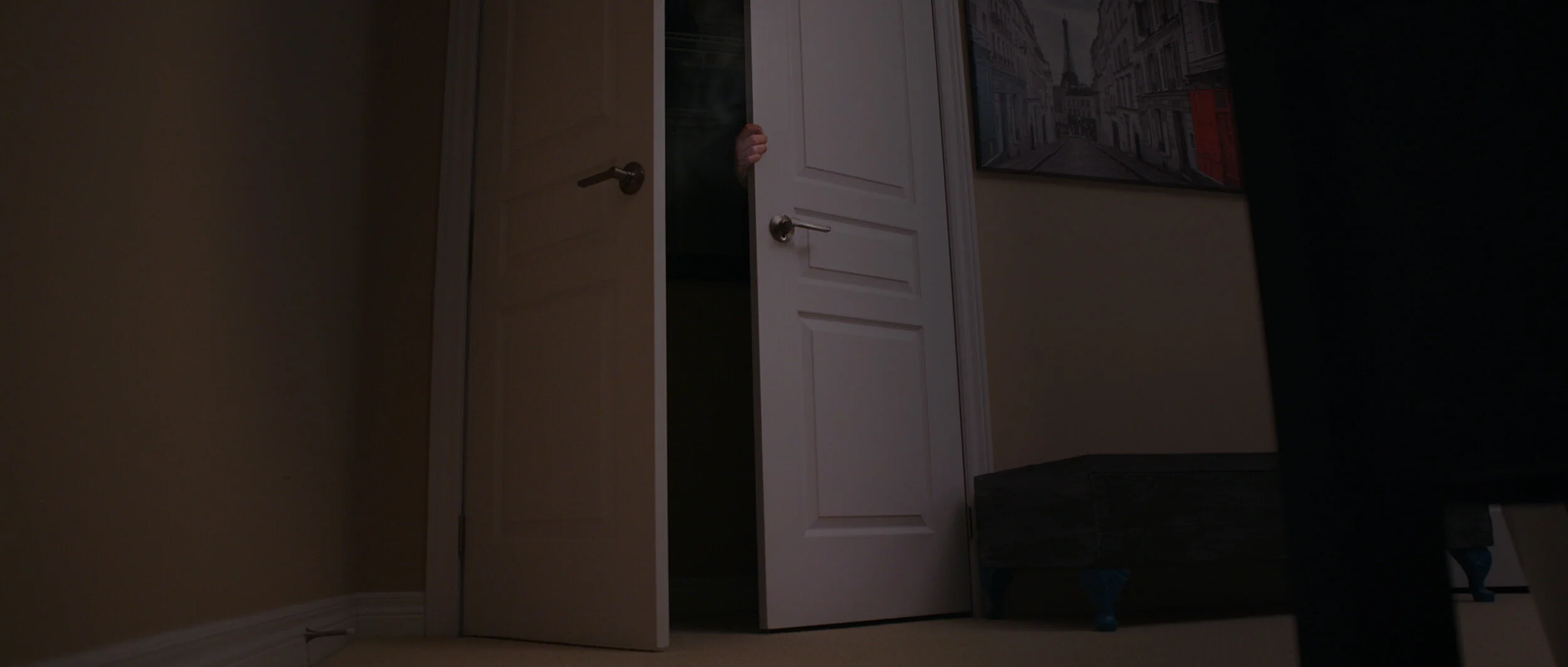 A woman realizes something might be in her closet.